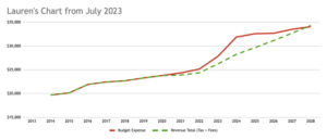 In July 2023, I made the below simple chart using the audited financials and budgets on the Village’s website. After the recent budget results came out, I went back to check on how my prediction did: we are ahead of schedule in a good way.