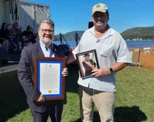 Bermingham, who died on August 11, 20025, was also the founding co-chair of the Hudson Valley Irish Fest and helped establish the Peekskill 9/11 Memorial at the riverfront. Harckham presented a posthumous New York State Senate Proclamation in Bermingham’s name for his “Exceptional Leadership and Distinguished Service” to Dan Dennehy, chair of the Hudson Valley Irish Fest, during the event.