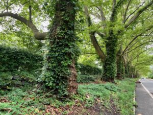 She pointed out how the trees were being attacked by a “noxious ivy,” predicting their eventual decay into “hunched green things, unidentifiable as trees,” like the ones along many of our highways. “These Sleepy Hollow Sycamores lend a particular elegance to the historic sites they border: Philipsburg; the Old Dutch Church and its cemetery; the Sleepy Hollow Cemetery – all on the National Register of Historic Places.”