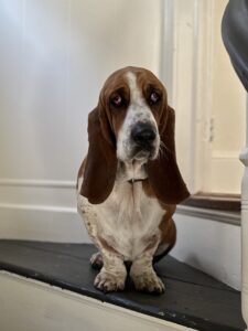Edna is a four year old, 55-pound female basset hound. She was born in Arizona and raised in Denver and Sleepy Hollow, where she lives with her family: Jesse, Melanie, Inez, Jolene (another basset hound), Francesca (a cat), and Claudia (a cat). It’s a full household!