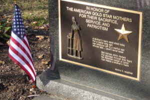 In a small adjacent area, a cluster of monuments acknowledge the loss experienced by mothers of military who died in service to their country as well as mothers who continue to worry about their sons and daughters now serving in the armed forces. The bronze plaque reads: “In honor of the American Gold Star Mothers for their sacrifice, service, and patriotism” followed by a short, tender poem. American Gold Star Mothers across the country volunteer thousands of hours every year to provide economic and social support to veterans, active-duty military, and their families. Named after the Gold Star that families would hang in their windows in honor of a deceased veteran, the organization will celebrate its 100th anniversary in 2028.