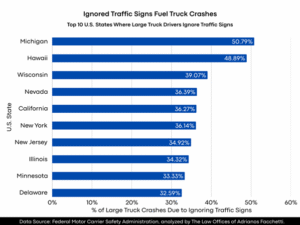 As large trucks move through intersections, highway corridors, and urban delivery routes, adherence to traffic signs remains a critical determinant of roadway safety. Across the United States, crash data shows that when commercial drivers fail to obey posted traffic controls, the likelihood of serious and fatal collisions rises sharply, with certain states experiencing far greater risk than others.