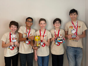 The team is comprised of sixth and seventh graders Tega Nakpodia, Ben Margolius, Robbie Smiley, Sebastian Zagorski and Michael Zammit, and is coached by Liz and Mike Zammit.