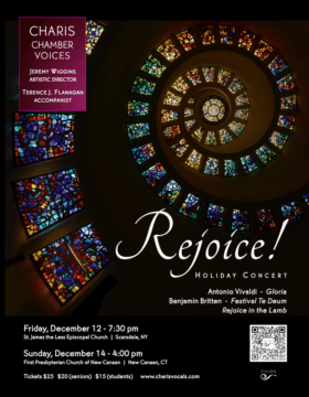 Charis Chamber Voices is a Westchester community choral ensemble known for excellent musicianship, vocal clarity, and a distinctively rich, warm sound. Join us at Rejoice!, a festive concert of sacred […]
