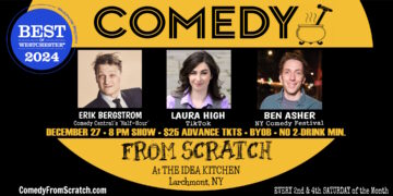 Comedy From Scratch is where you go in Westchester County to hear top comics from TV and NYC's major clubs performing long sets on an intimate stage. Past performers include comedians from HBO, Netlfix, Colbert, SNL, the Daily Show, Letterman, the Tonight Show, Comedy Central, and more. Every month, Ben Asher's presents comedy that reaches […]