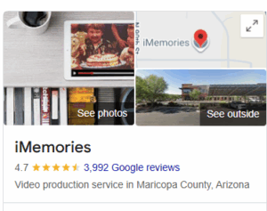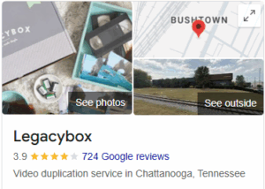 Before I chose which company to send my tapes to, I looked at their Google reviews and where they are located. iMemories has a 4.7-star rating with about 4,000 reviews, and they are in Arizona. Legacybox has a 3.9-star rating with around 700 reviews, and they are in Tennessee.