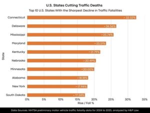 The research by personal injury lawyers H&P Law analyzed preliminary crash fatality data from the National Highway Traffic Safety Administration (NHTSA). By evaluating year-over-year changes, the study identifies the states where roadway dangers are declining most sharply – and those still struggling to improve.