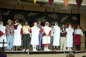 Behind the curtain, the actors and crew stood together chanting, “Energy, energy, flowing through my body” as an audience of nearly 200 family members and supporters waited in folding chairs.